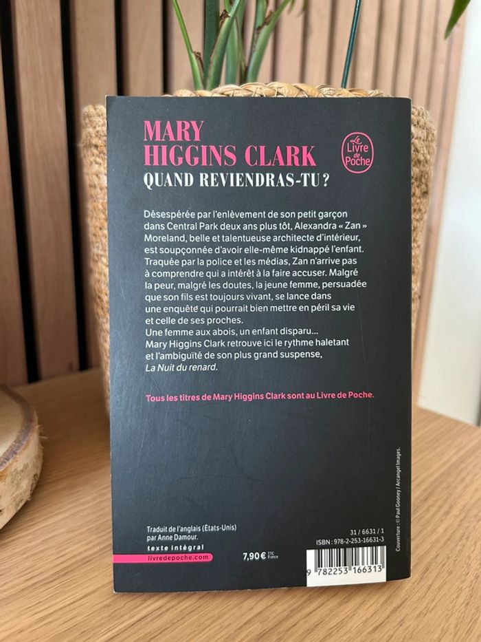 Livre de poche « Quand reviendras-tu ? » de Mary Higgins Clark Très bon état PAS DE VINTED GO
