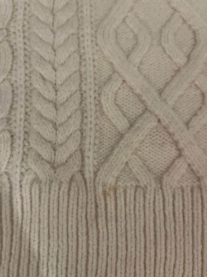 Très bon état. 2 micros taches et un trou presque imperceptible voir photo. Ne pas utiliser Vinted go merci #robepull #robepulltorsadée #robepullbeige #robepull36 #robepullirlandais