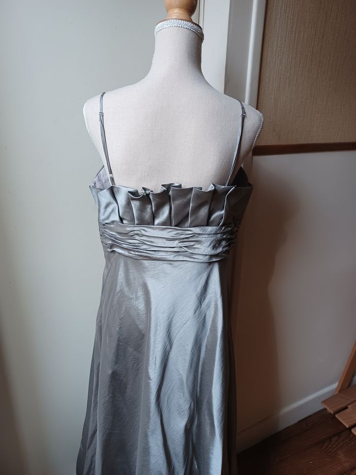 Robe cocktail grise, effet satinée. Neuve, jamais portée.