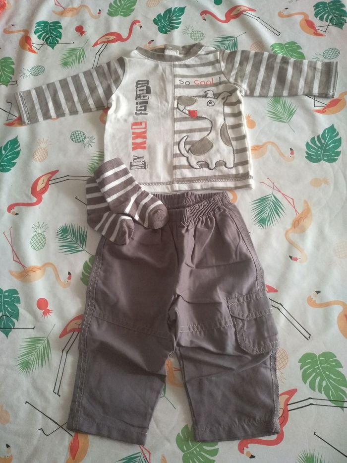 Ensemble 6 mois composé d'un pantalon, d'un t shirt manches longues et de sa paire de chaussettes