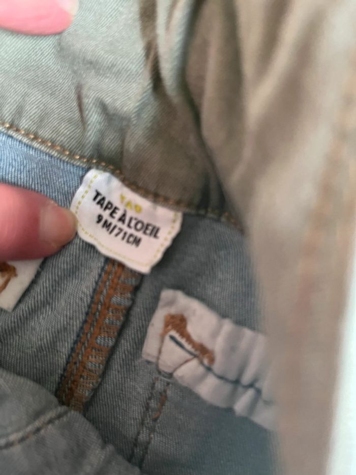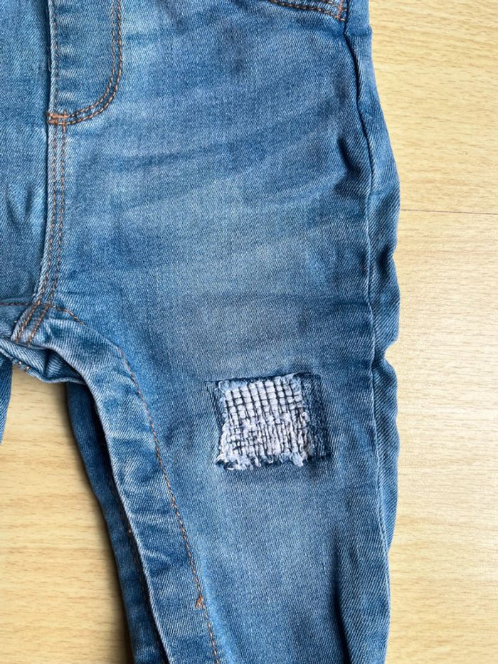 ==> Détails : bouton pression à l'entrejambe, effet jean déchiré sur la jambe gauche