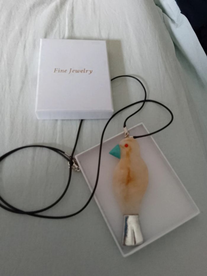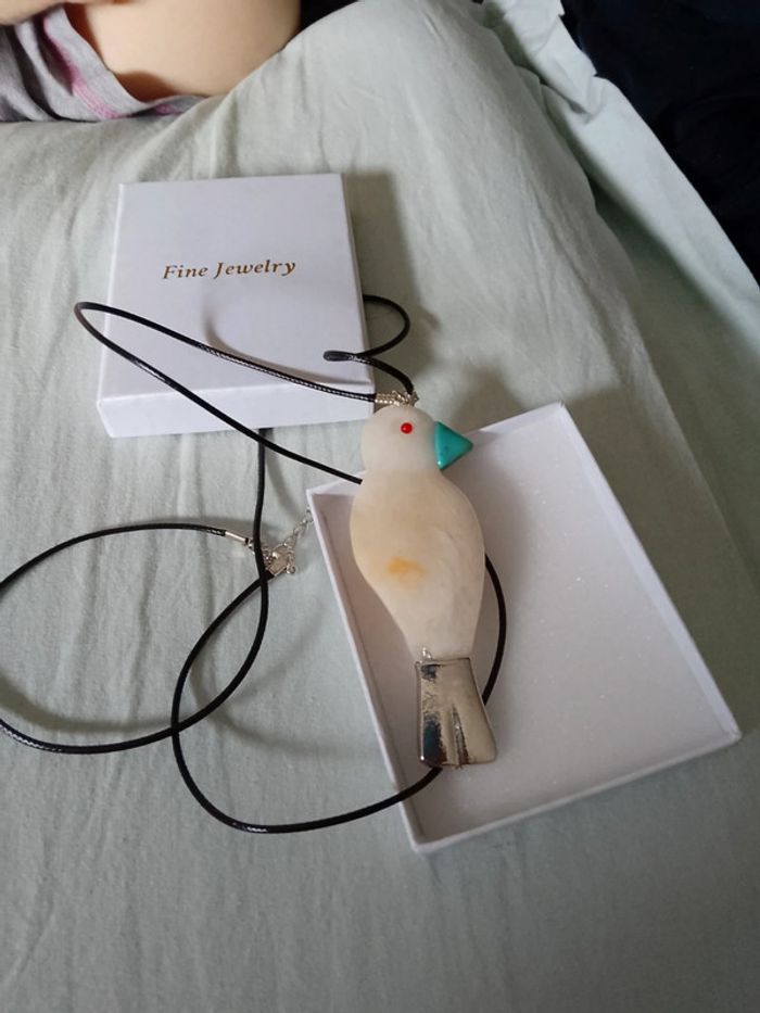 Collier bohème oiseau cordon cuir noir - photo numéro 5