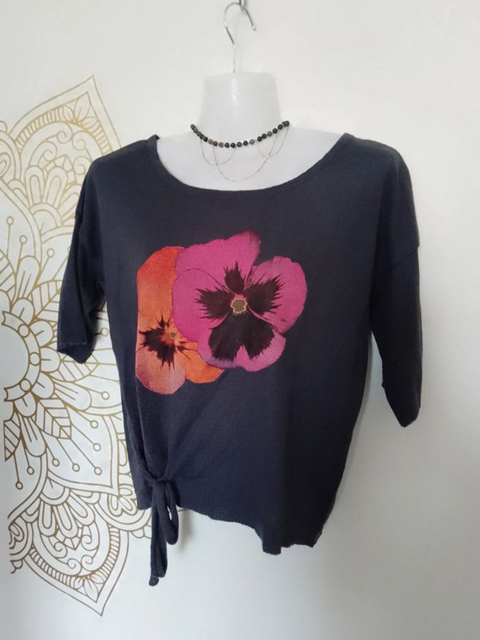 Joli pull estival bohème fleurs de violette - photo numéro 1