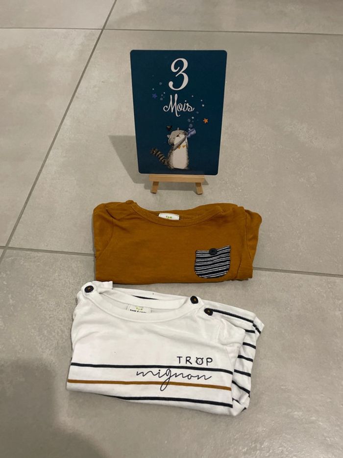 #vetements3mois_marg0106 #3mois #teeshirt #ensemble #garçon #tapealoeil #neufsansétiquette #jamaisporté #neuf #mancheslongues #pressions en haut à gauche et à droite #boutons en haut à gauche et à droite