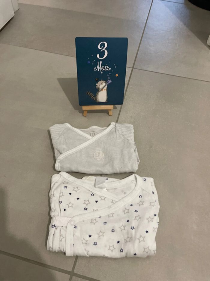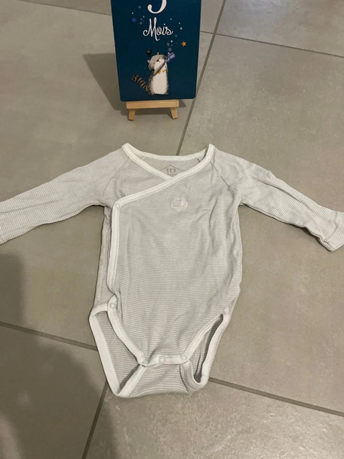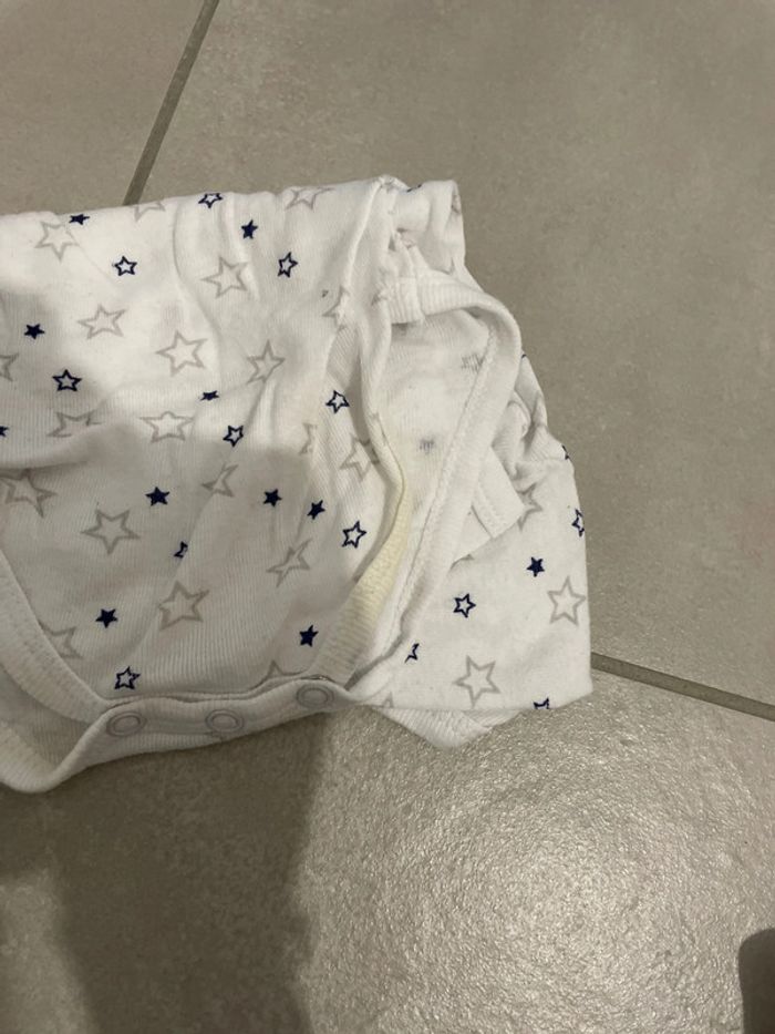 #vetements3mois_marg0106 #3mois #bodies #garçon #mixte #texbaby #mancheslongues #bonetat #pressionsdevant #croisé #tache (photo)