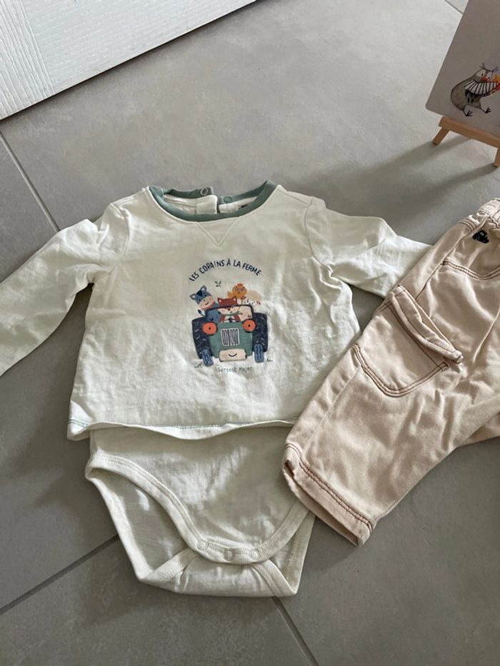 #vetements6mois_marg0106 #6mois #ensemble #ensemblebebe #garçon #teeshirt avec #body attaché Les copains à la ferme Tracteur #sergentmajor #neuf #jamaisporté #neufsansétiquette #mancheslongues #pressionderriere