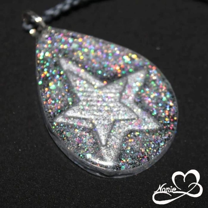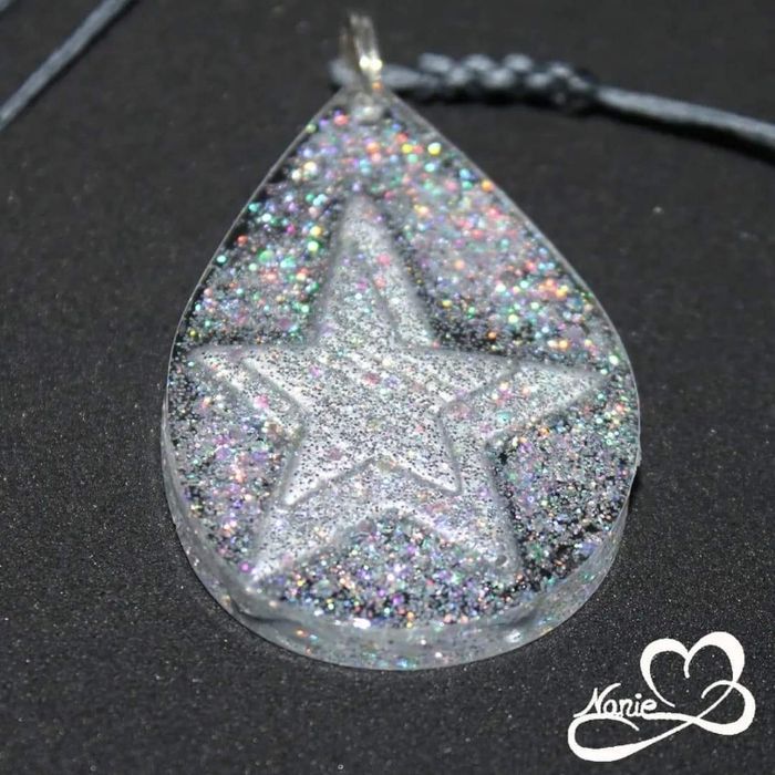 Pendentif en résine pailletée avec étoiles argentées !! 🌟 ⭐ - photo numéro 3