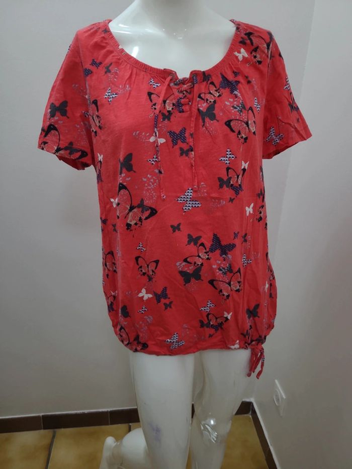 T shirt taille 44, étiquette coupée, réglable en bas du t shirt. Marque Cecil voir les pressions. Voir dimensions en dessous. Envoi rapide et soigné.