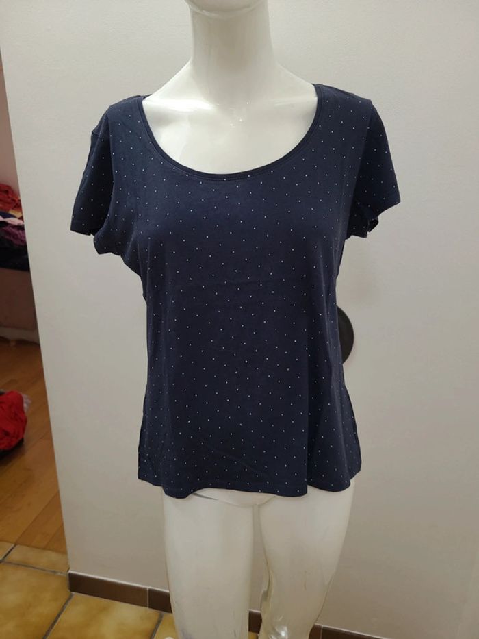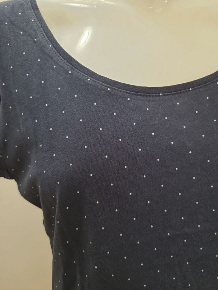 T shirt bleu marine a points blancs manche courte marque Kiabi taille L Envoi rapide et soigné.