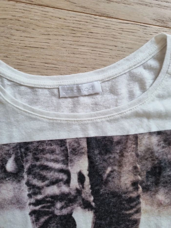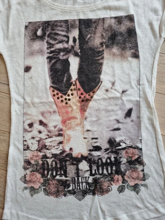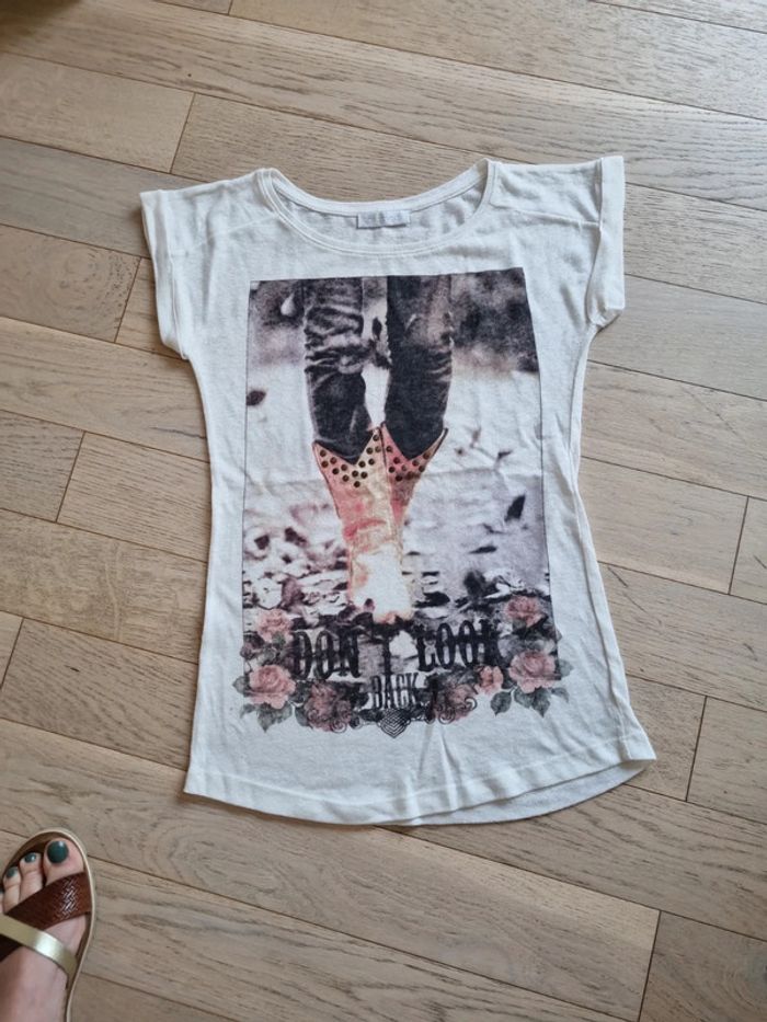 Tee-shirt promod Taille S, joli motif bottes avec rivets en metal. Très bon état. Mes réductions sont activées pour les lots 💐