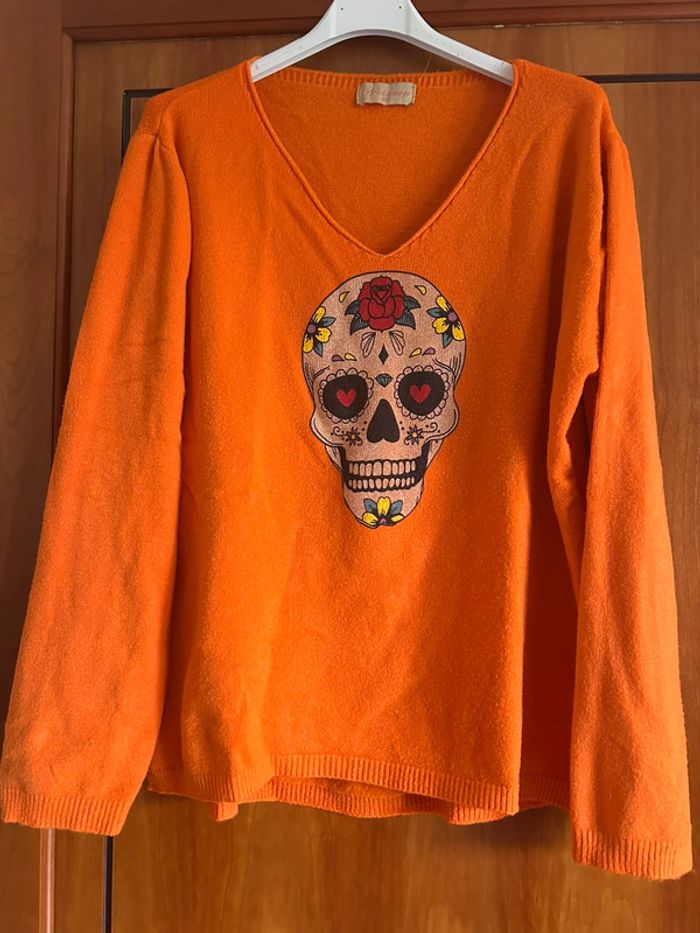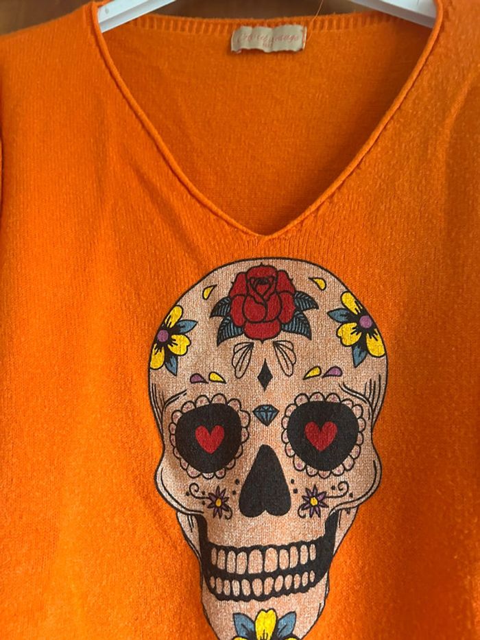 Pull orange col v skull April Vintage taille unique - photo numéro 2