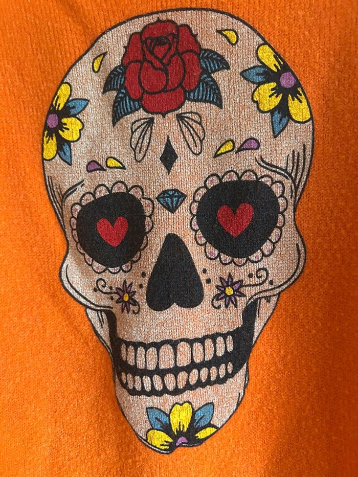 Pull orange col v skull April Vintage taille unique - photo numéro 4