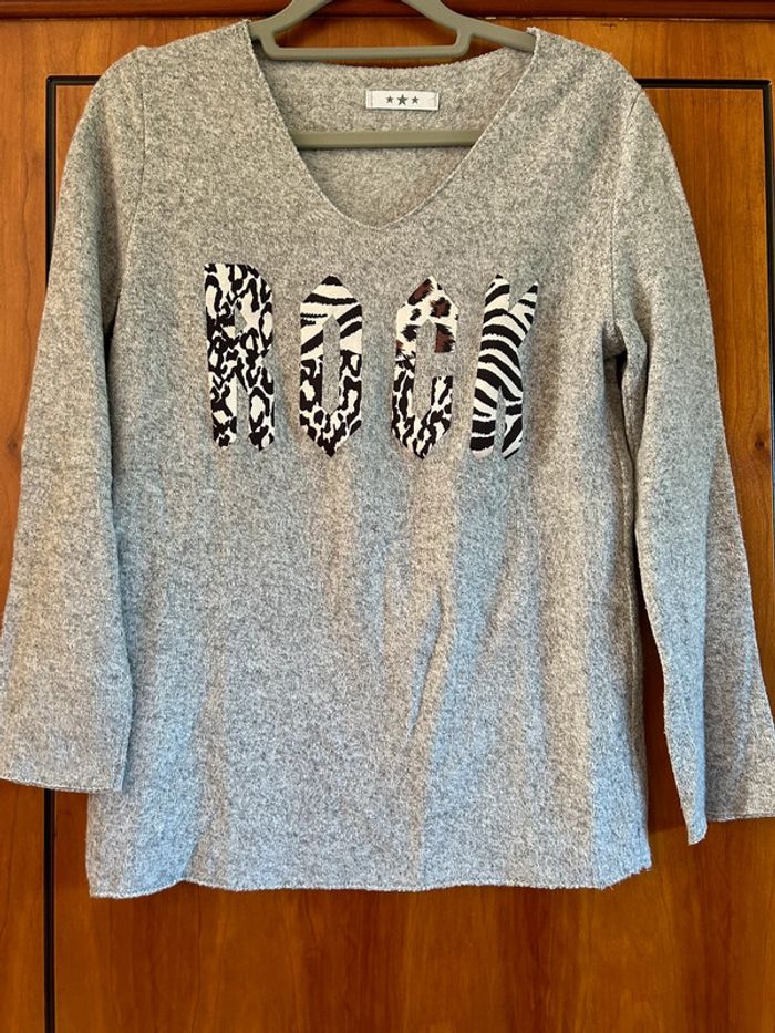 Pull gris rock col v 36-38 - photo numéro 1