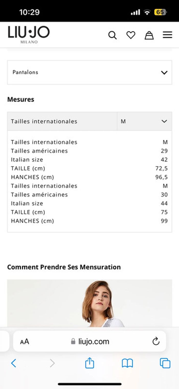 Taille 29 ce qui correspond à un M voyez dernière photo Taille à plat 37cm #pantalongris38 #liujo38