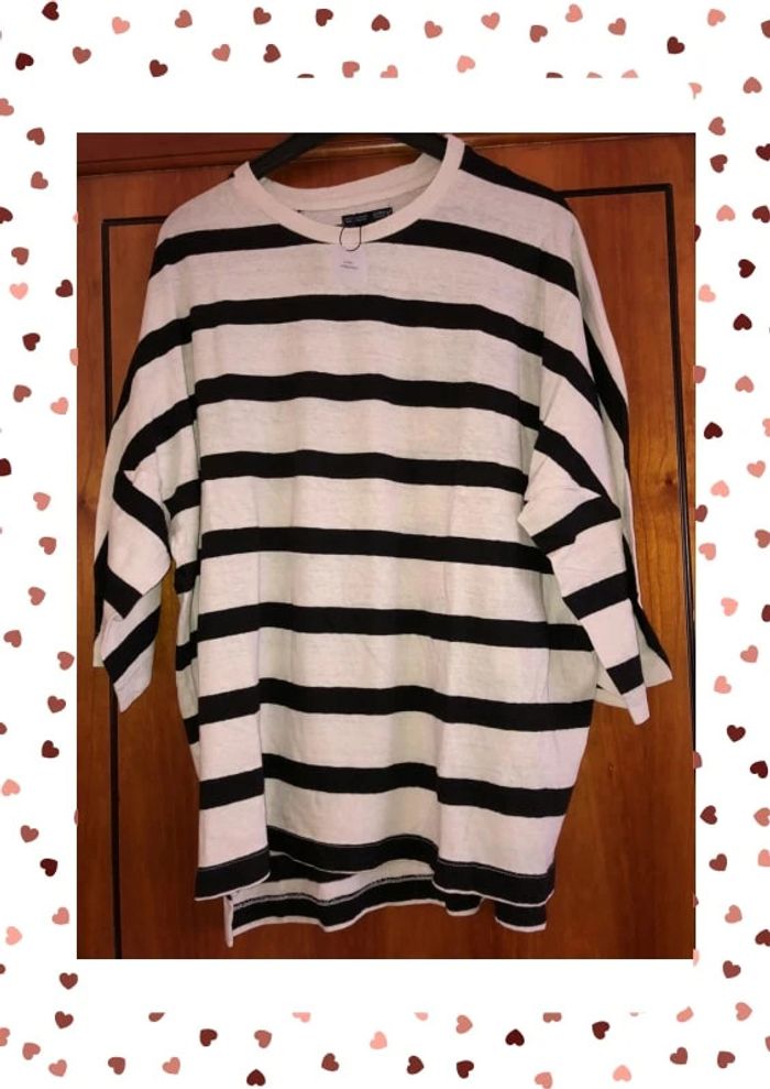 Taille grand , je mets dans taille unique car peut convenir pour plusieurs tailles Aisselles 60cm, hauteur 64/70cm #tshirtrayé #tshirtligné36 #zara36 #neufavecetiquette #tshirtmarin #mariniere363840 #tshirtligné363840 #tshirtlignétailleunique #marinièretailleunique