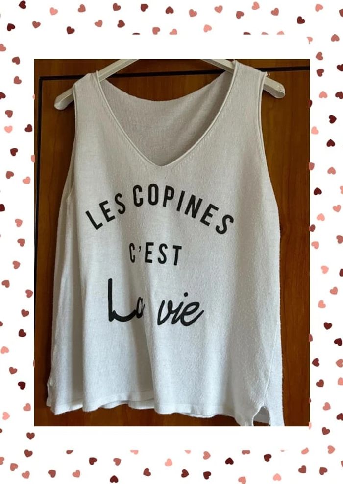 Aisselles 47 hauteur 58 Légères taches suite à séchage dehors et pluie. Essayer détachant #débardeurblanc #lescopinescestlavie