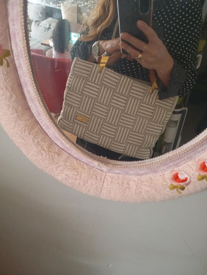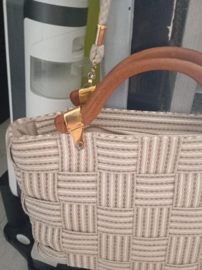 Sac Italie en tissus Lanière épaule et main en bois marque d usure que les anses