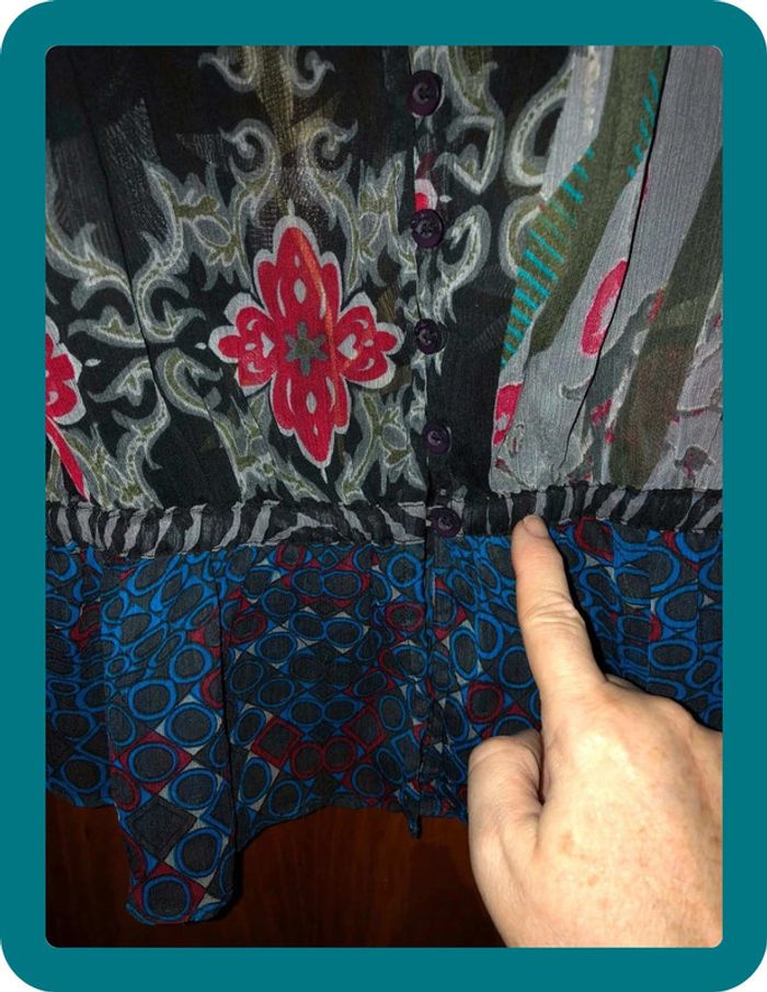 #blousefluide36 #blousedesigual36 #desigual36 #blousetransparente36 Assez transparente le bas est froncé et élastique, voir 4ème photo