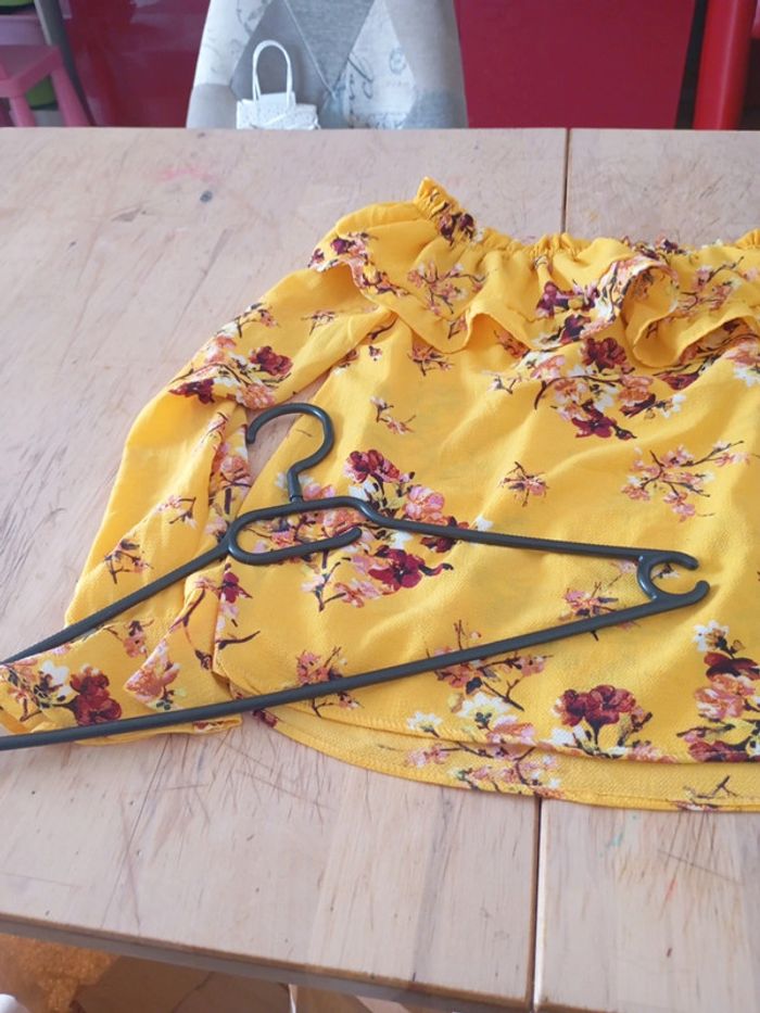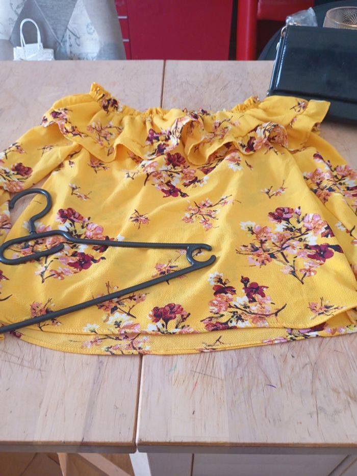 Neuf J'ai e motif fleuri Épaule dénudé Manches longues évasée