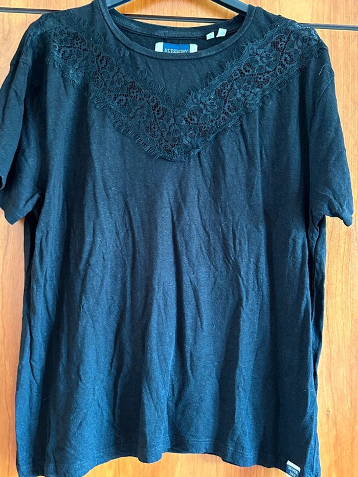T-shirt noir dentelle 42 Superdry - photo numéro 1