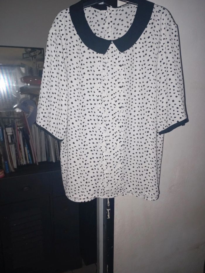 Exellent état Blanc noir à pois Col et boutonnière a l'arrière