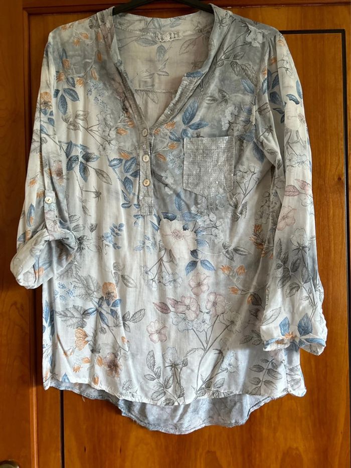 Aisselles 53 hauteur 77 Jamais portée #blousefleurietailleunique #blousemanchesretroussables #madeinitaly