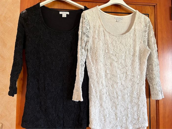 Lot de 2 blouses dentelle noire/blanche 36 Amisu