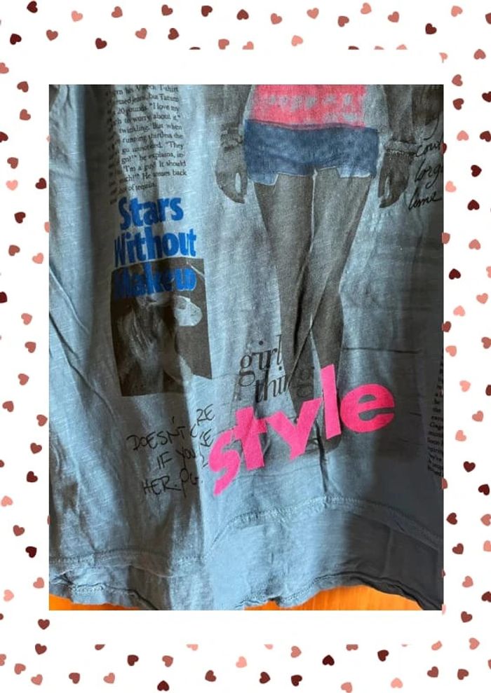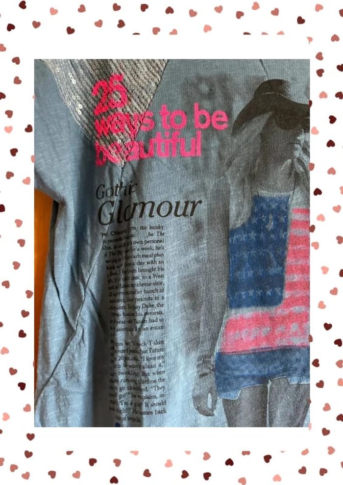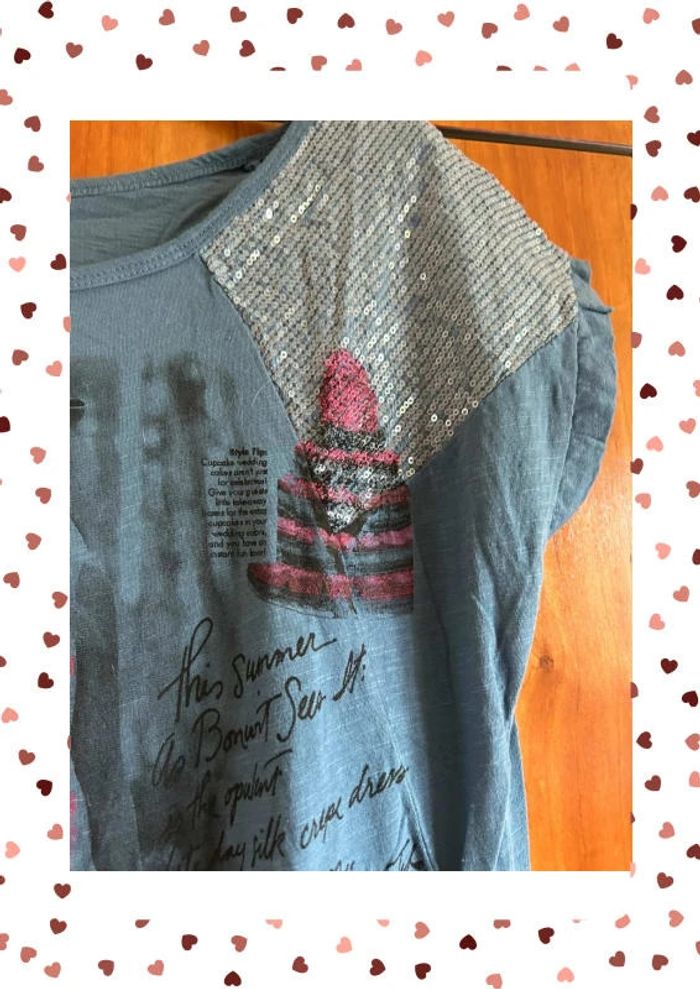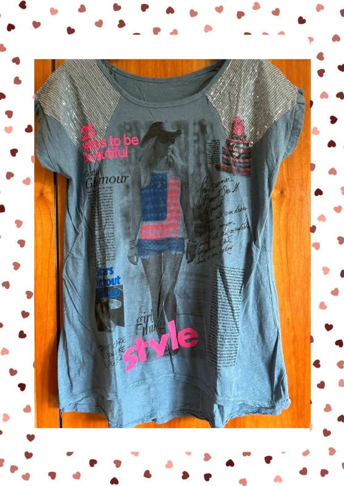 T-shirt bleu sequins imprimés taille unique