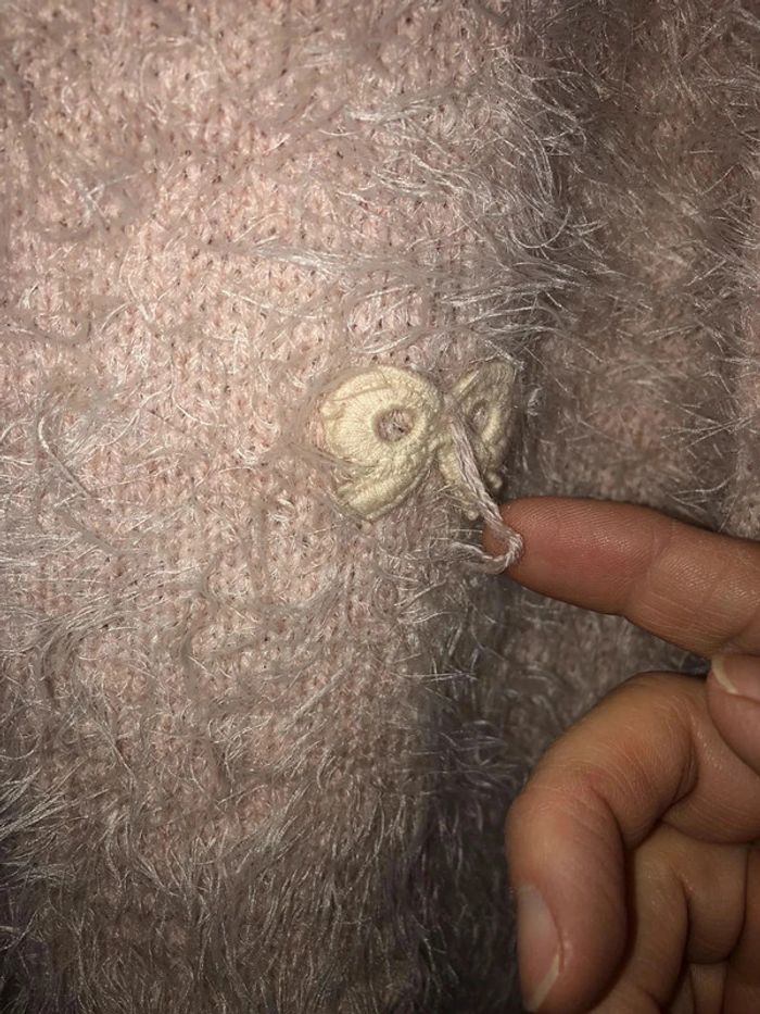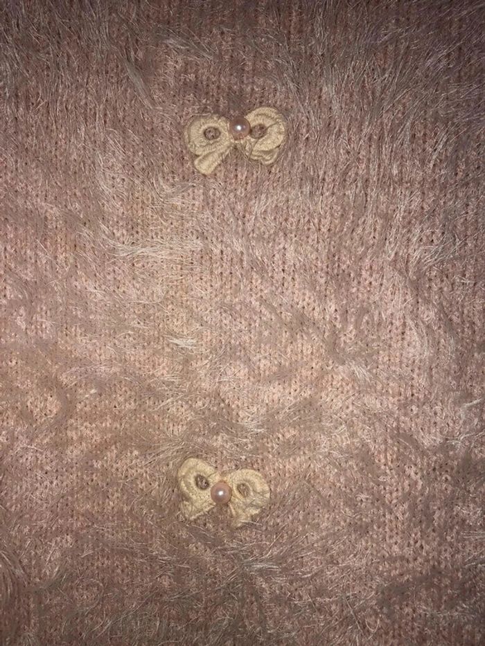 taille unique mais taille petit Aisselles 53 hauteur 58 #pullapoilsrose #pullfluffyrose #pullmillenium il manque une perle à un noeud #pulldoux38 #pullhiver38