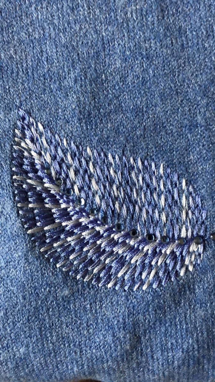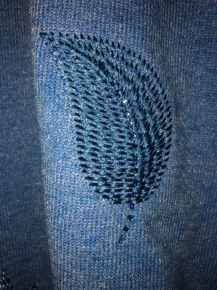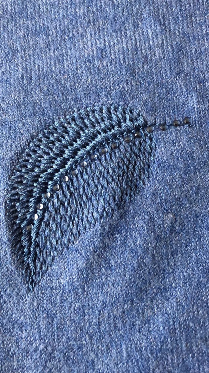 je mets taille unique car convient à plusieurs tailles. Aisselles 54cm n’a jamais été porté mais légère trace de cintre ou rangement. Neuf mais je mets dans très bon état #pullbleu #pullplumes #pullchaud