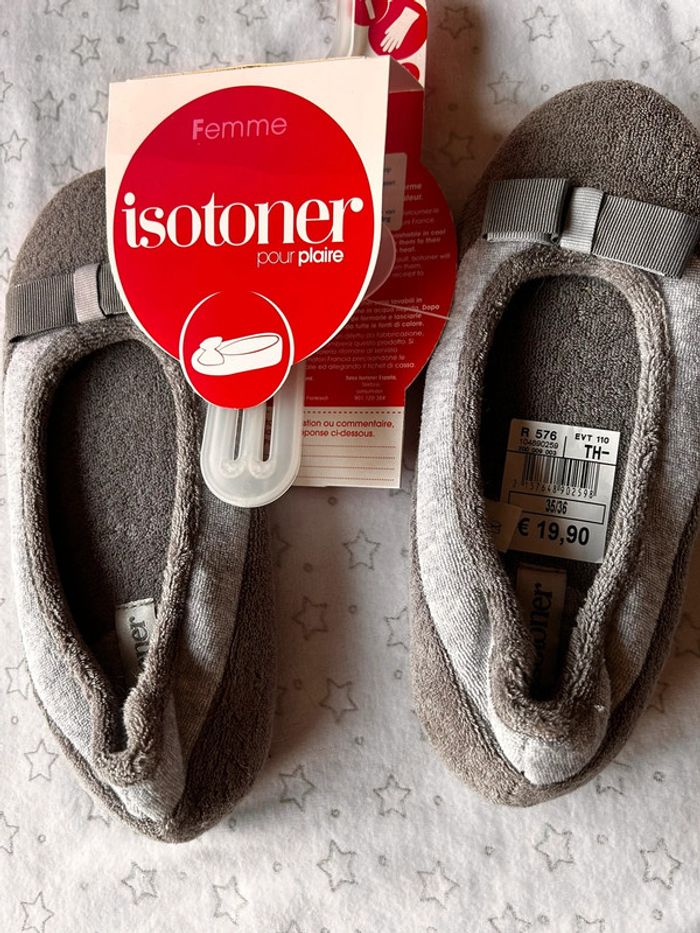 Pantoufles grises 35-36 Isotoner neuves avec étiquette