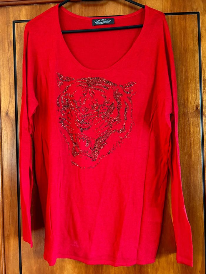 Aisselles 61, largeur bas 43, hauteur 71 #longtshirtrouge #ithippie3840 Petit taille unique #tshirttigremancheslonguesrouge