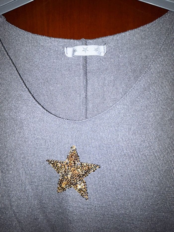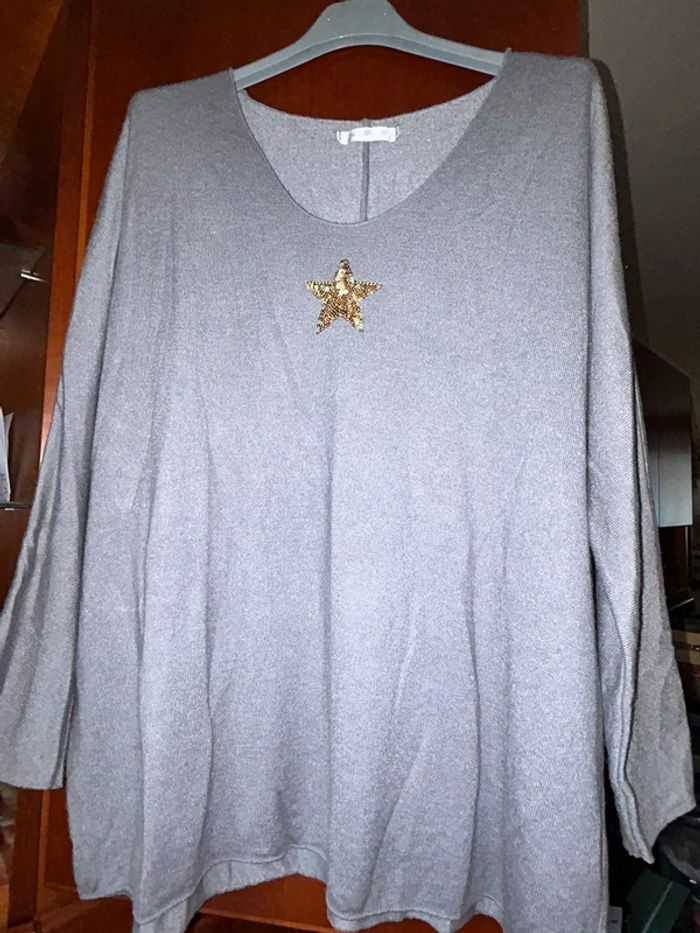 Aisselles 66 hauteur 65 #pullgriscolvtailleunique convient pour plusieurs tailles #pullétoilesequins