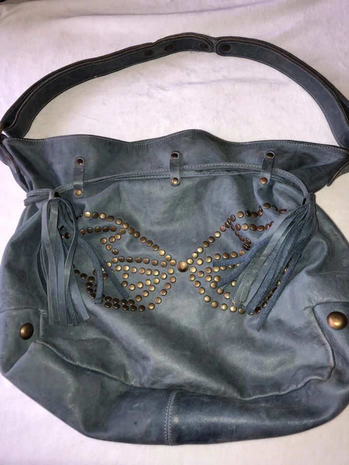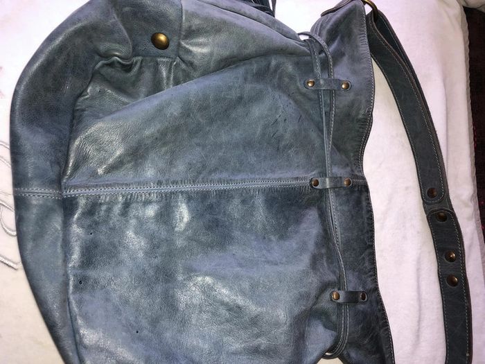 #sacbleuépaule #sacbleu #sacencuirepaule #sacepaule #sacclouté #sacafranges tbe malgré 3 petits points à l’arrière dans le bas voir photo