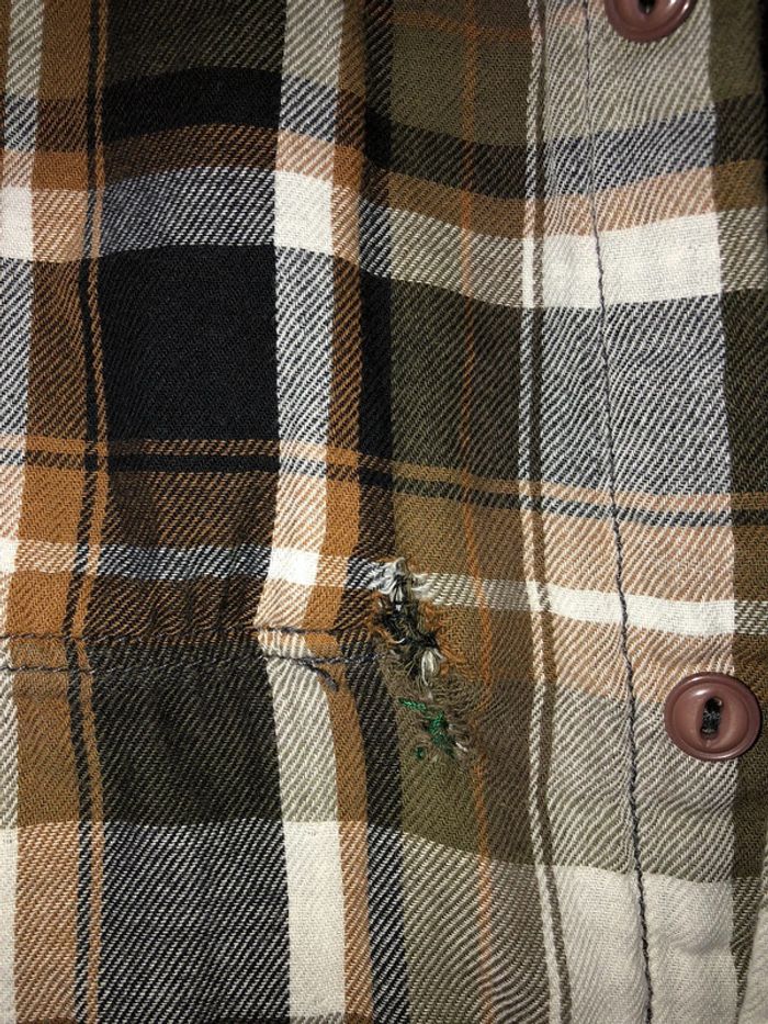 #chemiseacarreaux36 #chemise36 #chemisediesel36 Cette chemise a été recousue , voir dernière photo. peut-être recouvrir d’un badge ou autre ?