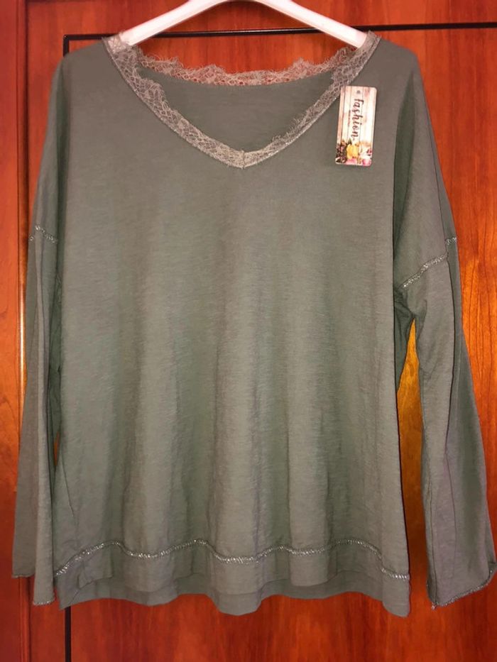 T-shirt manches longues kaki neuf avec étiquette - photo numéro 1