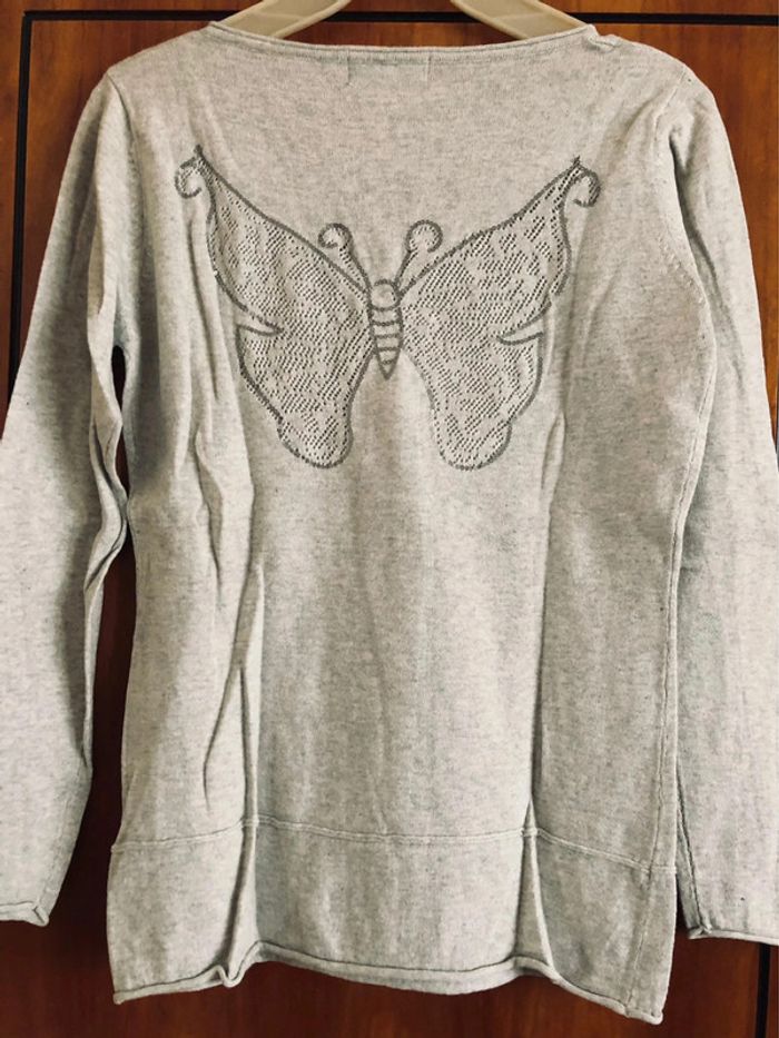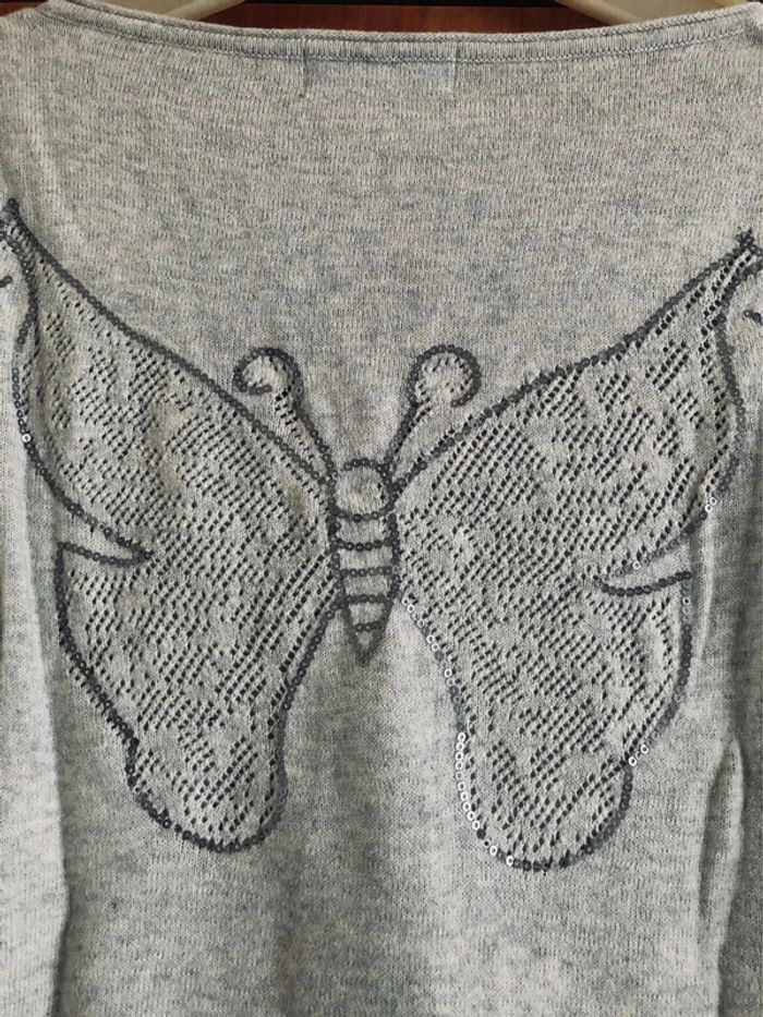 Aisselles 48cm, voir dos #pullgriscolv #pullgris3840 #pullpapilllon #pullsequins #ithippie