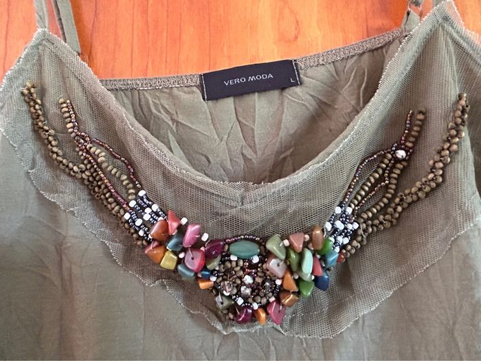 Aisselles 40 Très joli avec les pierres #debardeurkaki3840 #debardeurpierres #veromoda3840 #debardeurbretellesréglables3840