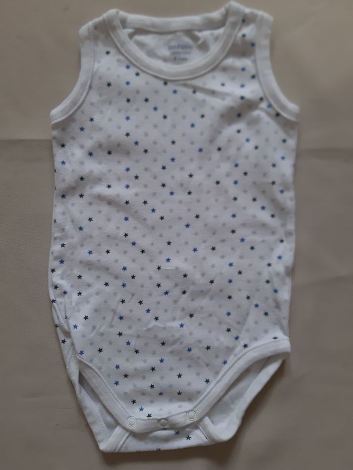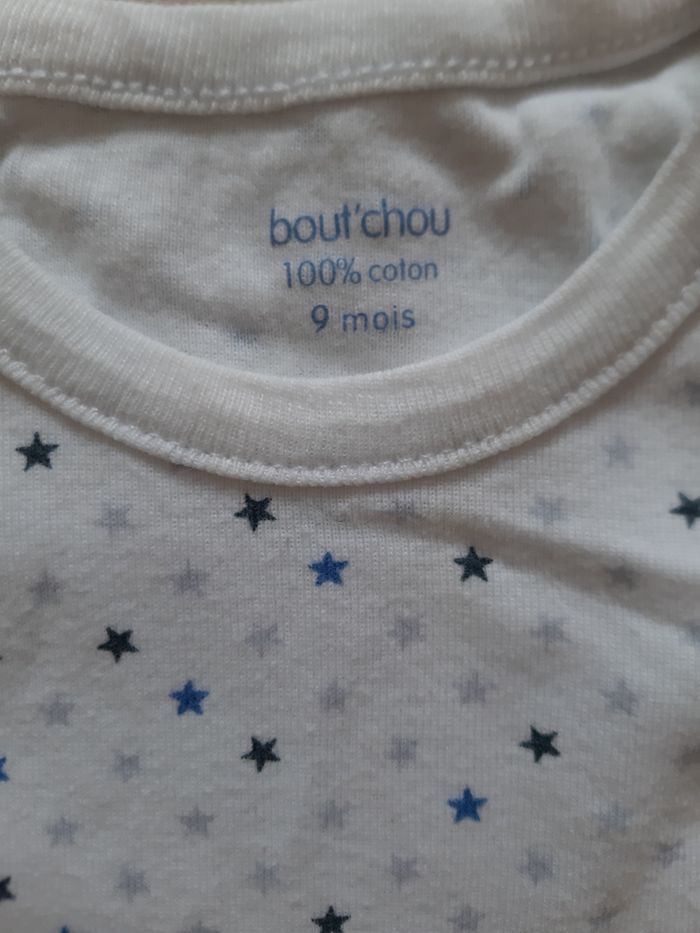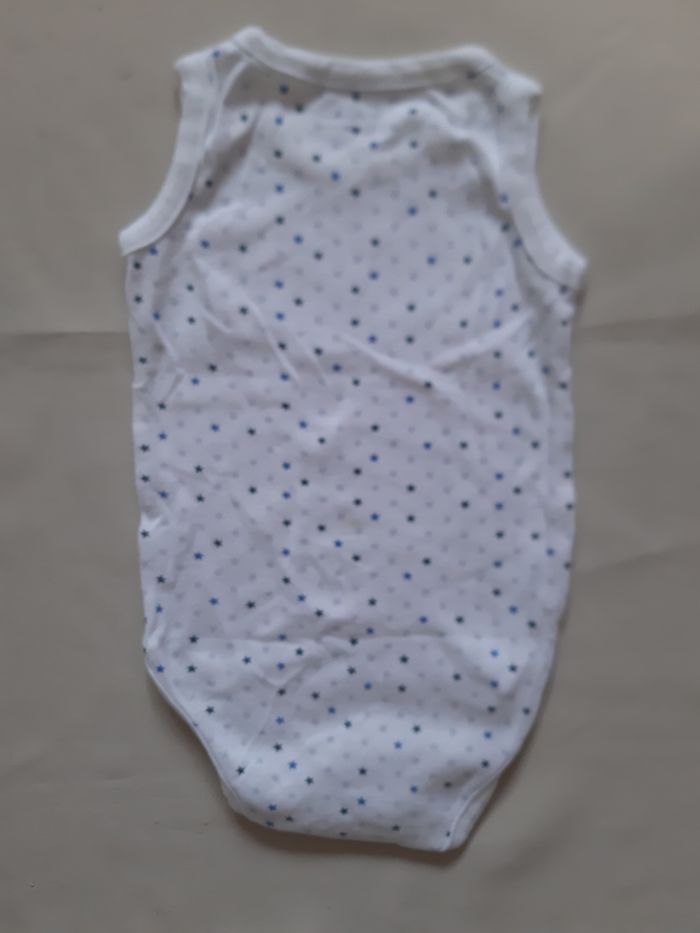 body blanc sans manches, de la marque Bout'chou, en taille 9 mois motifs : étoiles bleues et grises En très bon état. 🔍 D'autres vêtements en taille 9 mois disponibles. Utilisez les filtres par tailles pour faciliter vos recherches. 😉