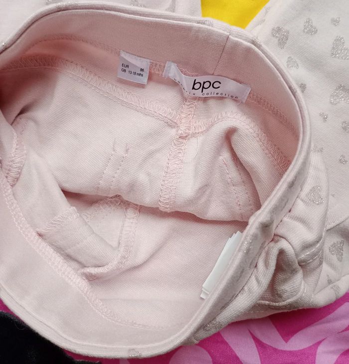 Crème orangée, avec cœur dorés Tregging Bonprix de 12 à 18 mois Jamais porté, ça se voit, pas la moindre trace d'usure 60 viscose 35 polyester 5 elastane Ce n'est pas un jean's mais ce n'est pas un legging non plus 🤢🙃🐱