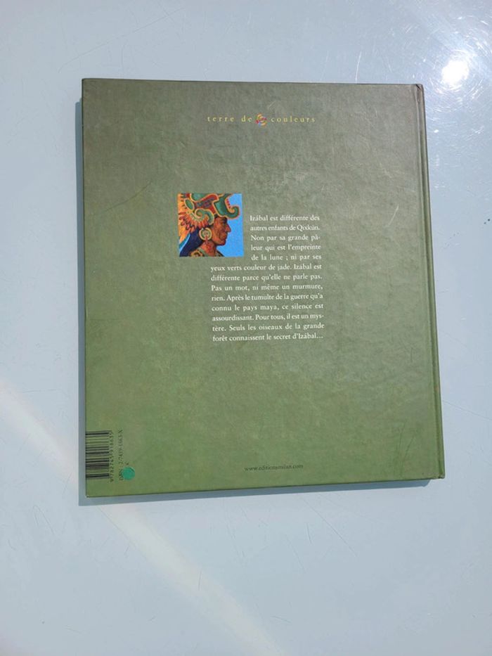 MIMAN JEUNESSE IZABAL L'ENFANT-OISEAU En pays Maya, Izabal est différente des autres enfants. L’oiseau de Jade, le quetzal, serait descendu sur Terre et y aurait déposé cette petite fille aux yeux verts. Depuis, Izabal semble figée dans le silence. Mais, lorsque pour ses douze ans, son père lui offre un ocarina, tout change : elle s’aperçoit que par son chant elle attire les oiseaux et communique avec elle. Ce don occasionne son malheur et il faudra l’intervention du dieu-oiseau pour lui rendre sa liberté. Un conte initiatique agrémenté de belles illustrations. Dimensions 25 x 1.1 x 29 cm Très bon état Mes autres livres enfants : #livreenfantmooglou