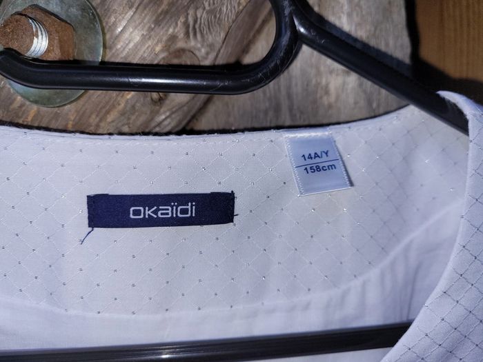 Magnifique combishort Okaïdi blanc, motifs argentés, ceinture jaune, 14 ans, neuf