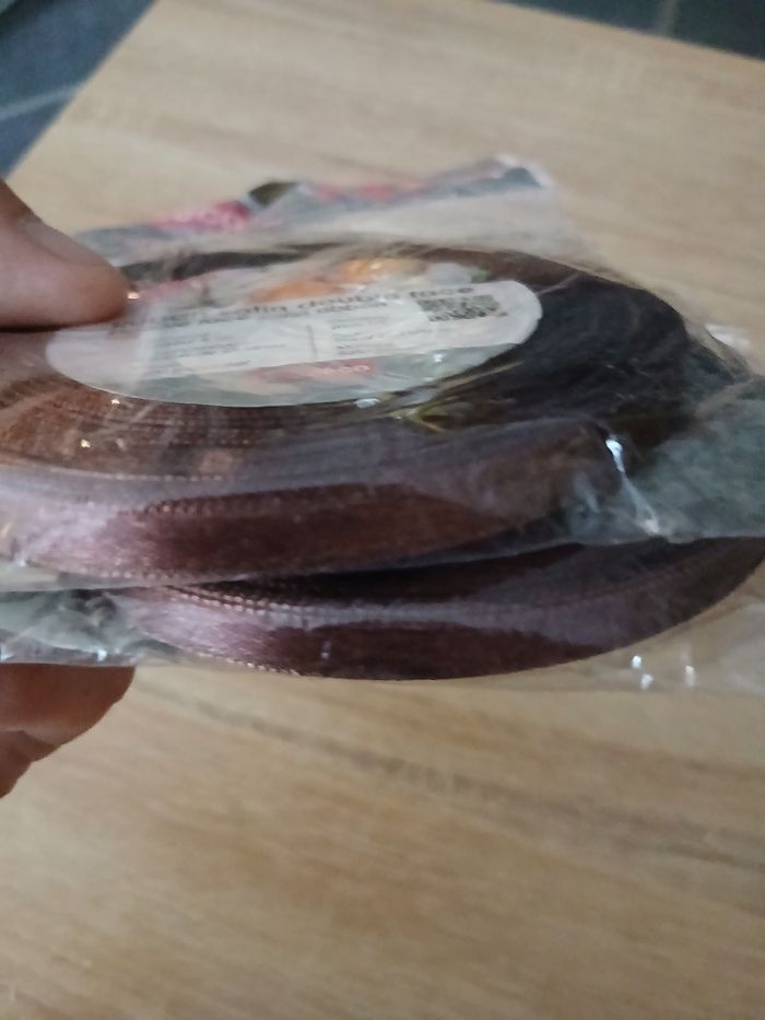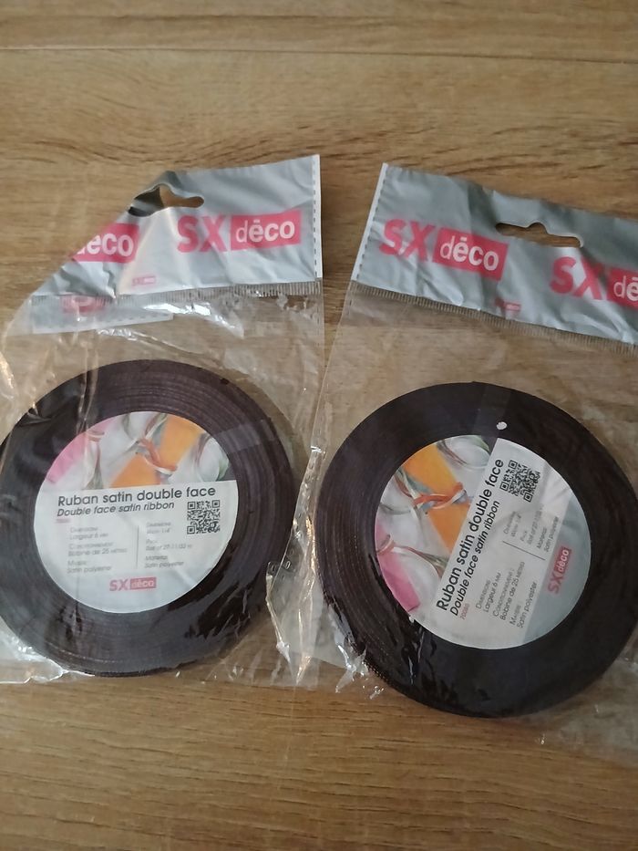Lot de 2 rouleaux de ruban satin marron de 25 mètres 6mm de large . Soit 50 metres de ruban D'autres ruban bouton tissu perles pompons ect.. de dispo ds mon dressing n'hésitez pas à jeter un coup d'œil ou à me demander
