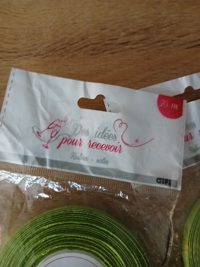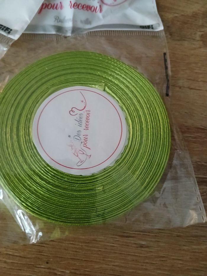 Lot de 2 rouleaux de ruban satin vert de 25 mètres 6mm de large . Soit 50 metres de ruban D'autres ruban bouton tissu perles pompons ect.. de dispo ds mon dressing n'hésitez pas à jeter un coup d'œil ou à me demander