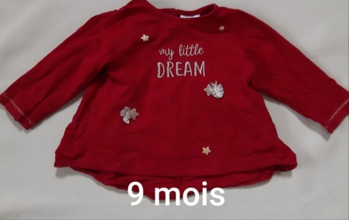 Tee-shirt manches longues / blouse rouge bordeaux fille - tape à l'Œil - 9 mois - photo numéro 1