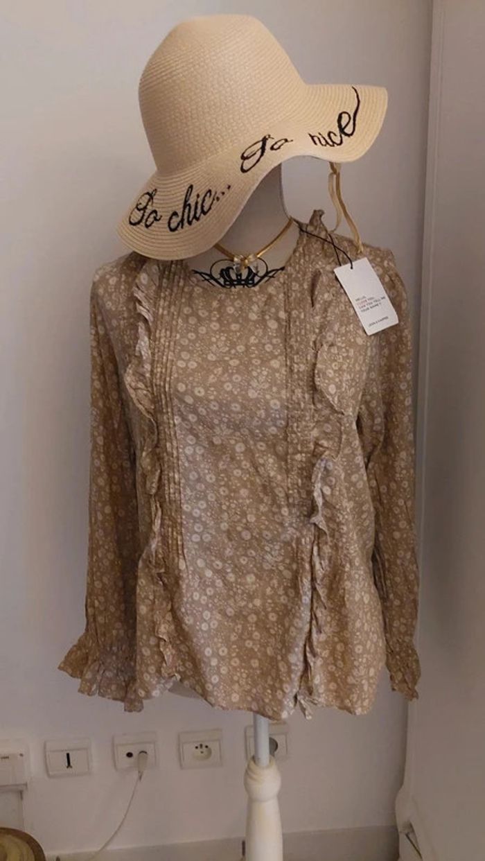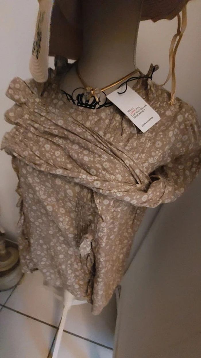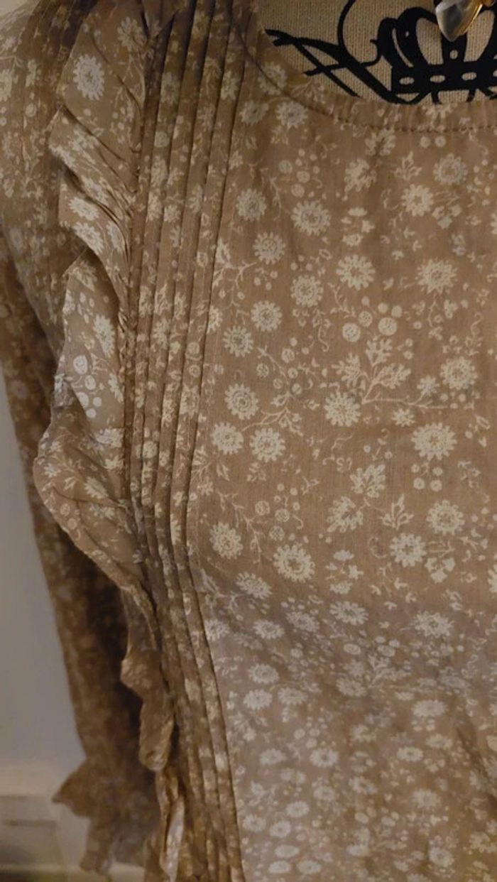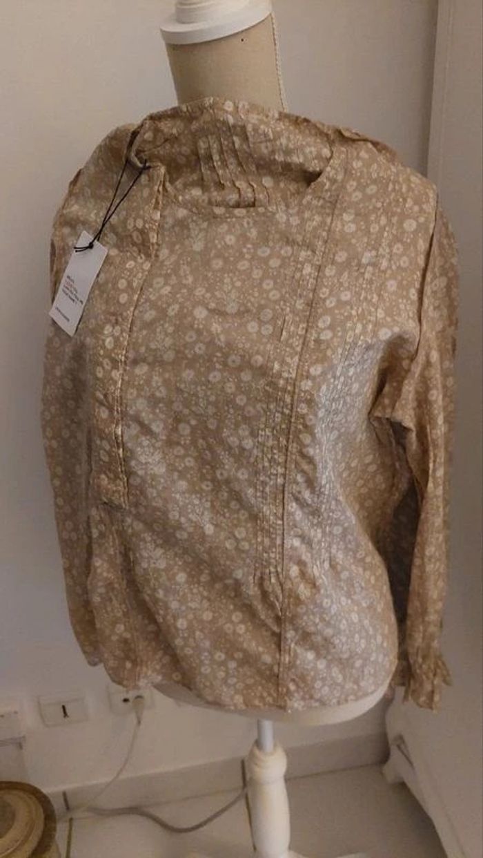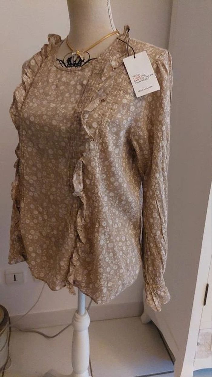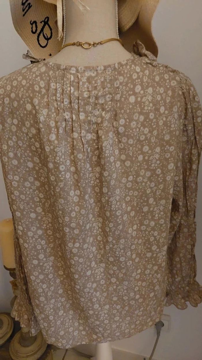 Superbe chemise chemisier blouse de marque Leon & Harper taupe beige avec motif fleuri taille M (38-40). Avec boutons sur une partie du devant de la blouse. Matière pur coton biologique.