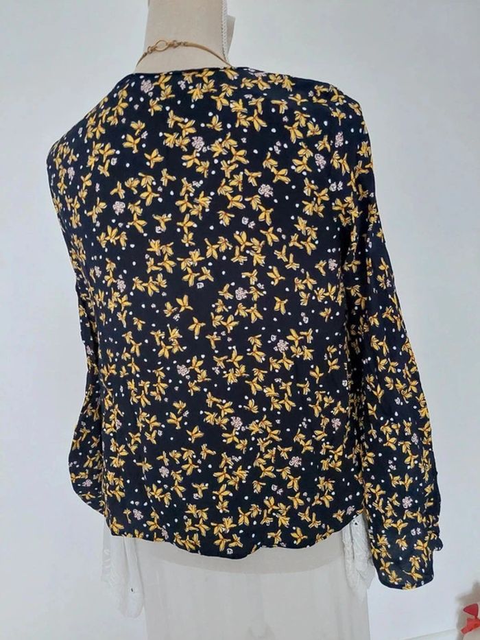 État neuf chemisier blouse Zara motif fleuri noir et jaune - photo numéro 8