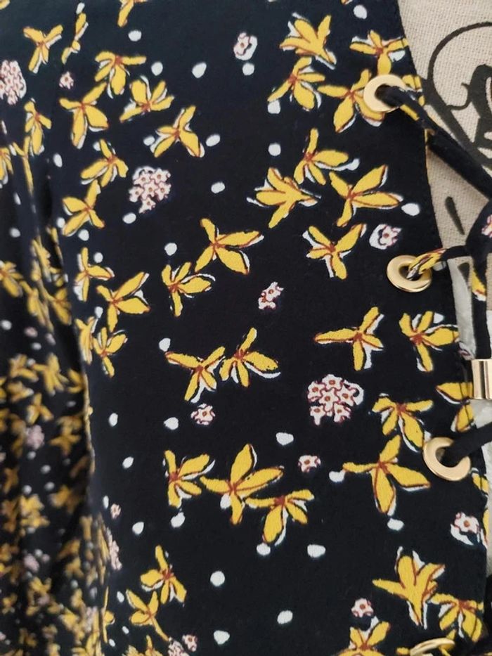 État neuf chemisier blouse Zara motif fleuri noir et jaune - photo numéro 5