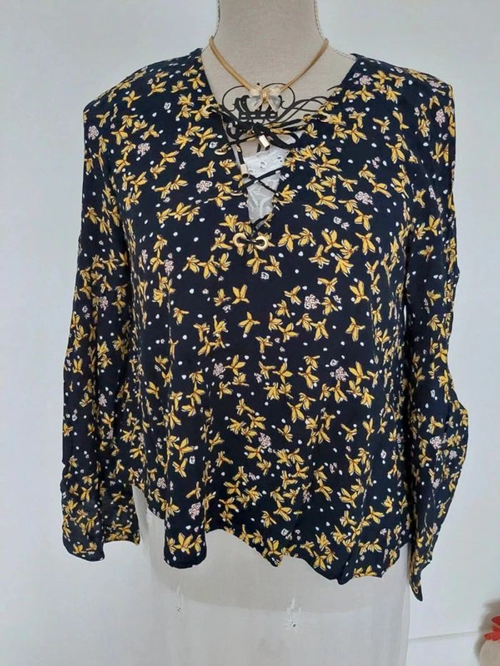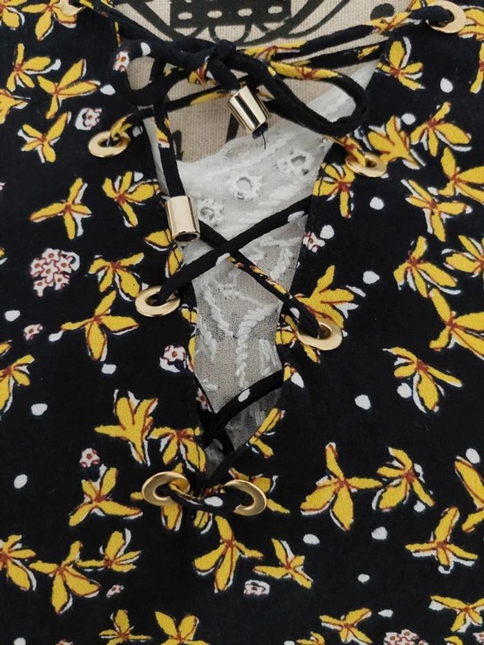 État neuf chemisier blouse Zara motif fleuri noir et jaune - photo numéro 2