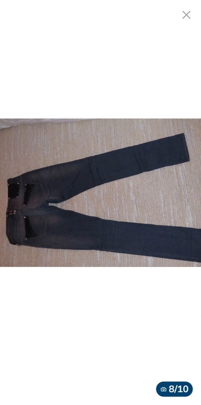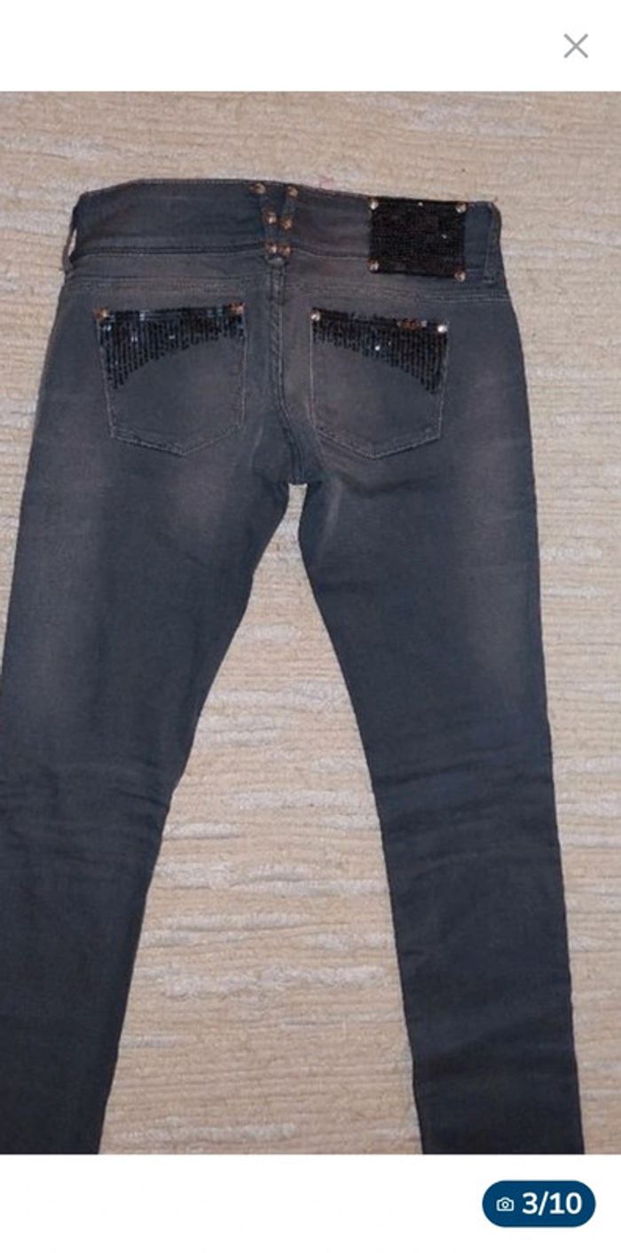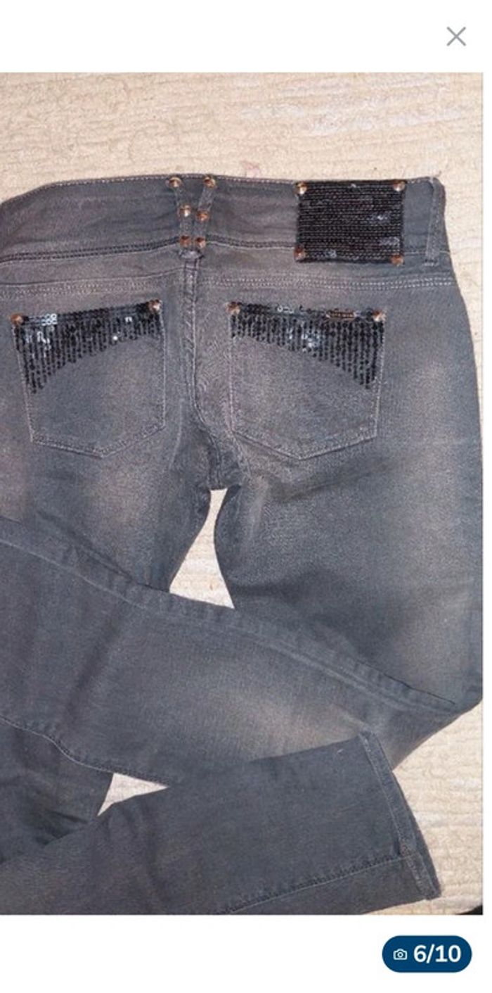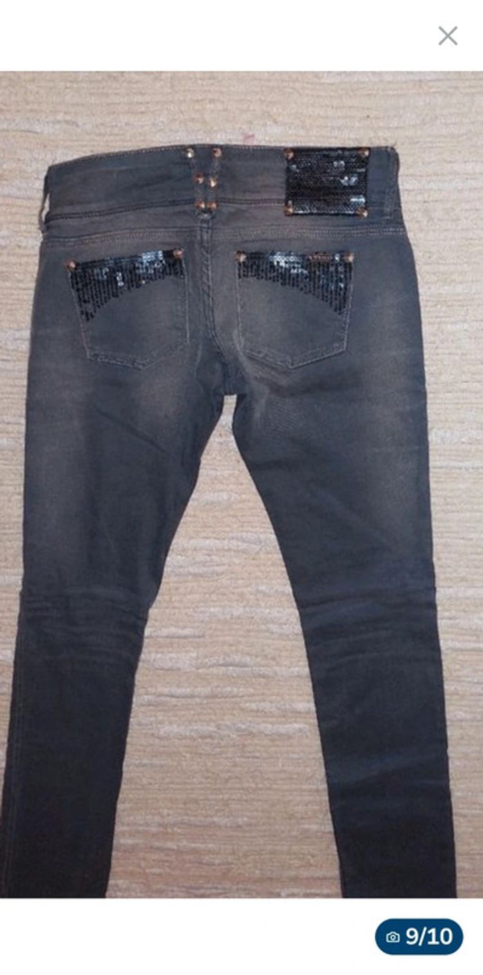 Superbe pantalon jeans de marque Le temps des Cerises taille US 27, taille française 36-38. Gris foncé avec sequins noirs. Très bon état.